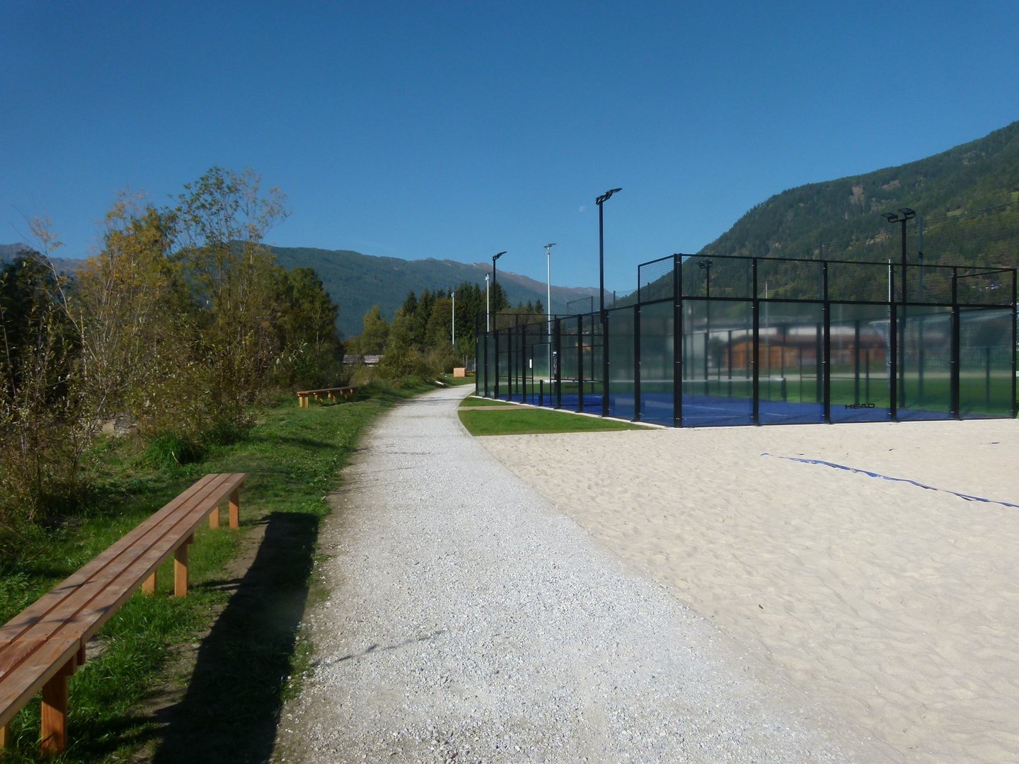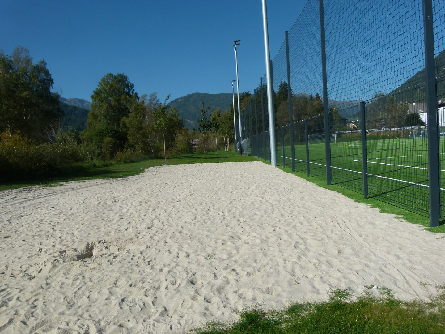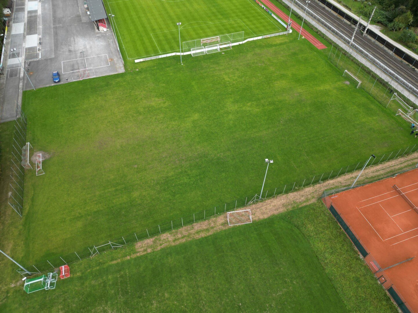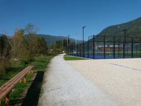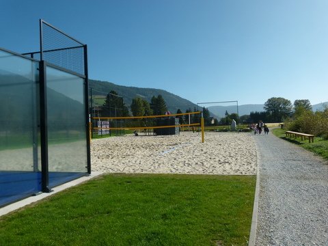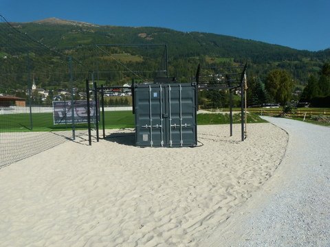 Kunstrasenfußballfeld, Naturrasenfußballfeld, Tennisanlage, Paddle-Tennis, Beachvolleyballanlage, Bewegungs- und Fitnessstationen