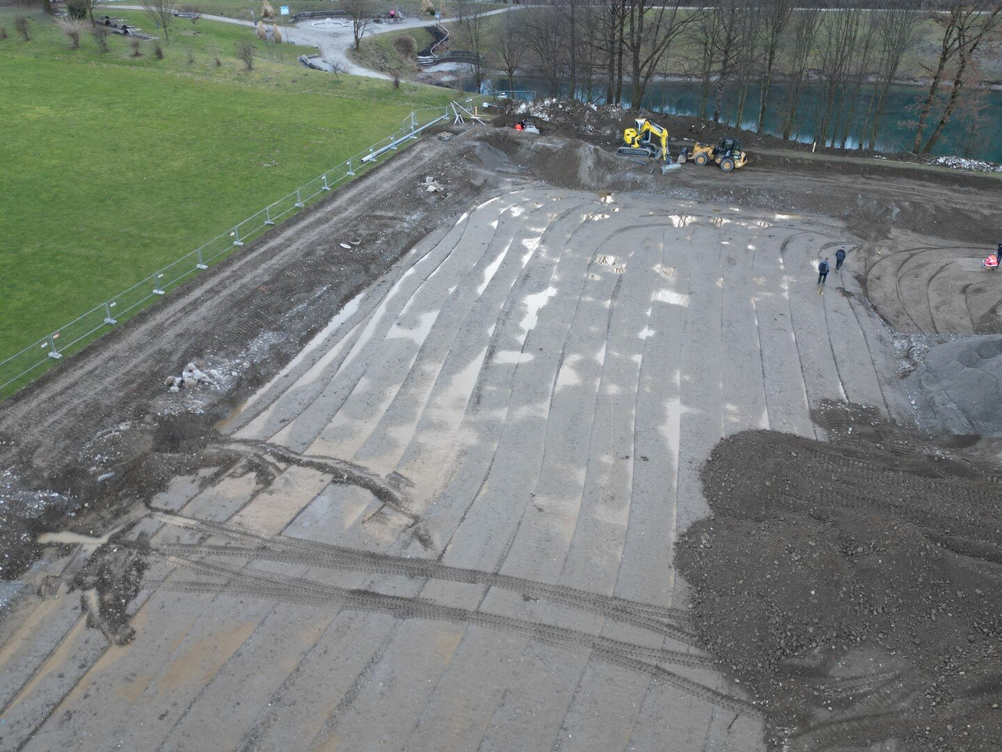 Abklärung mit Naturschutzbehörde, Ausschreibung Erdbauarbeiten und Kunstrasensystem, Plandarstellung Entwässerung, Bewässerung und Zaunanlage neu,